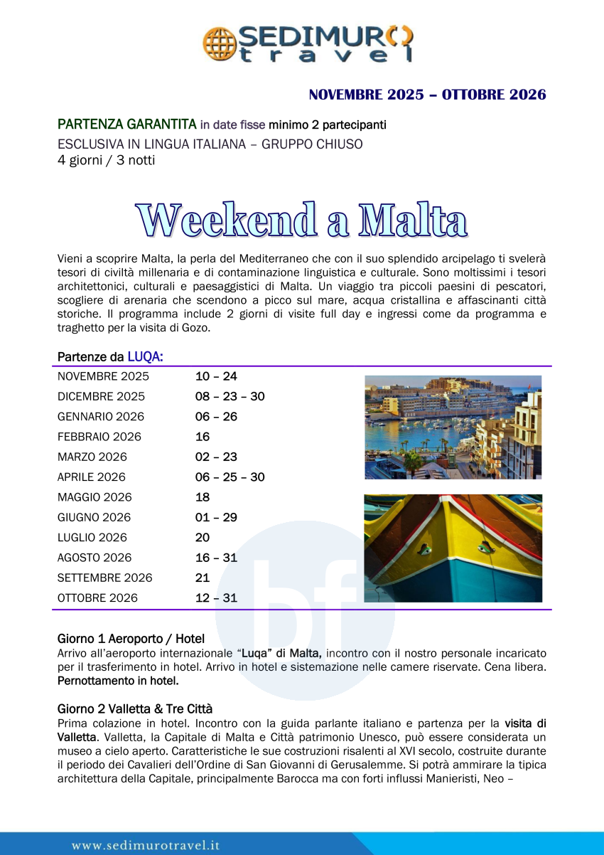 Weekend a Malta in date fisse da Luqa in italiano 4 giorni