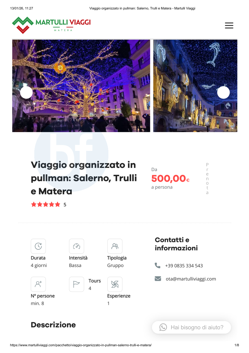 Viaggio organizzato in pullman: Salerno, Trulli e Matera