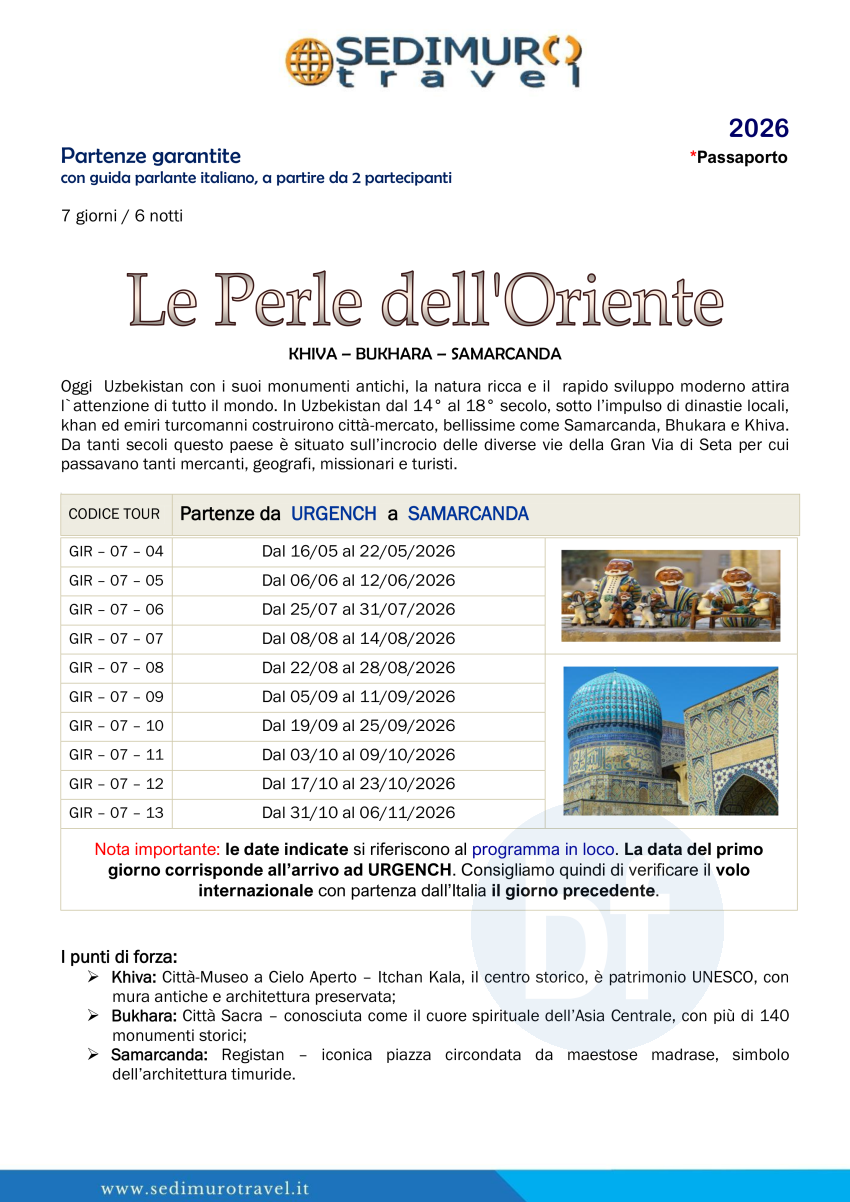 Le perle dell’Oriente da Urgench a Samarcanda 7 giorni