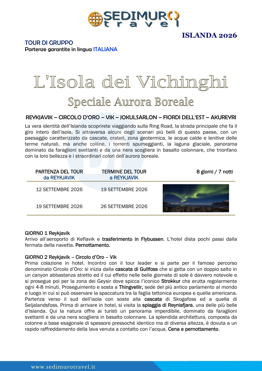 L’Isola dei Vichinghi speciale Aurora Boreale a settembre da Reykjavik 8 giorni